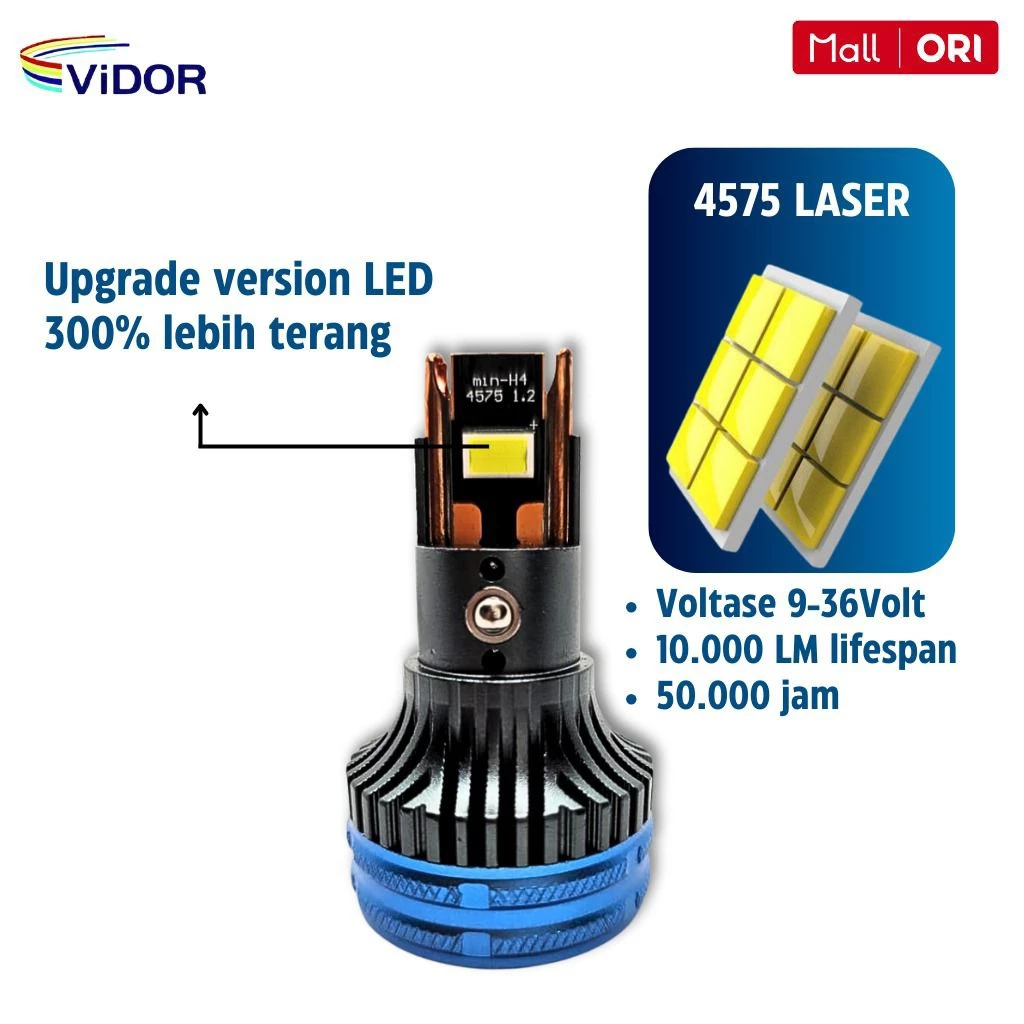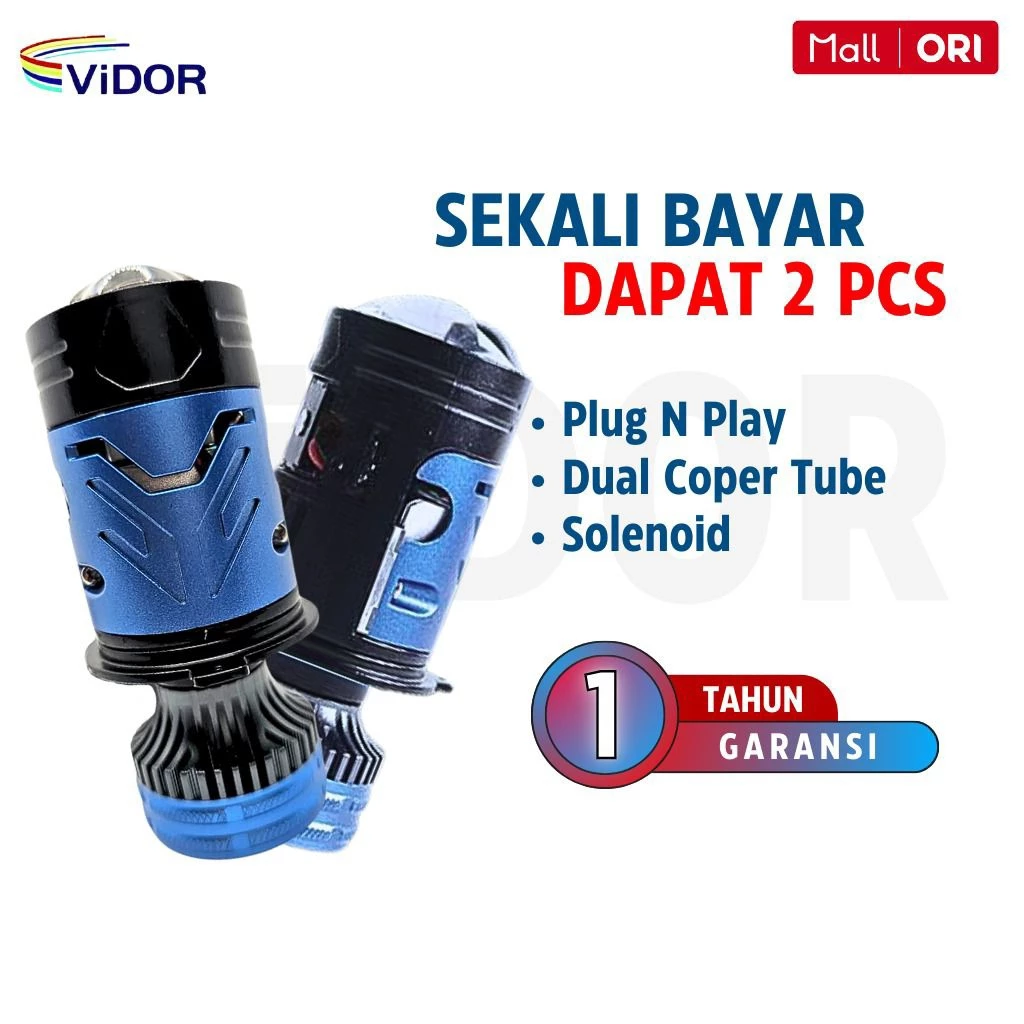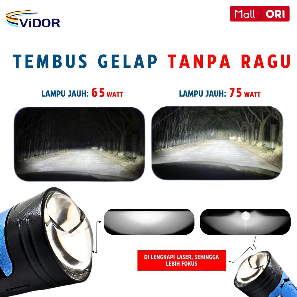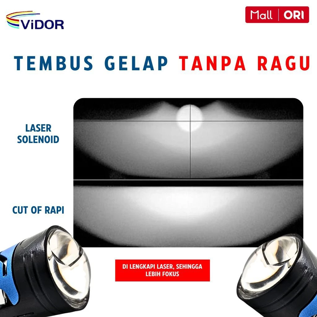 VIDOR Lampu MINI LASER SOLENOID , CUT OFF RAPI 55 Hi / 45 Lo, Socket H4 PNP – satu set ( 2 psc) Kunjungi Tokopedia